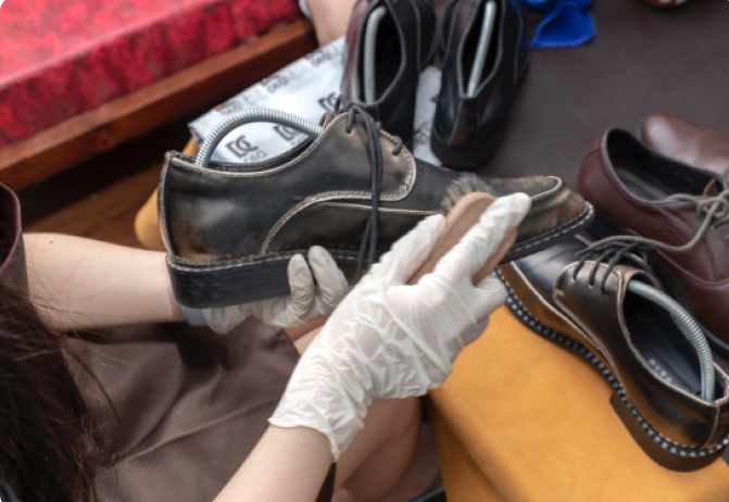 • Bước 1: Lấy chổi nhỏ (hoặc bàn chải đánh răng) làm sạch hết bụi bẩn trên bề mặt giày, đế giày, đặc biệt là vị trí cần dán keo.