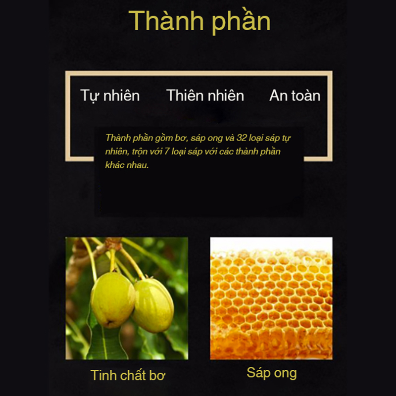 • Thành phần thiên nhiên từ sáp ong, tinh dầu hạnh nhân ngọt và chất nhuộm cô đặc giúp thẩm thấu mạnh và tái tạo lại màu da, phục hồi màu tốt hơn